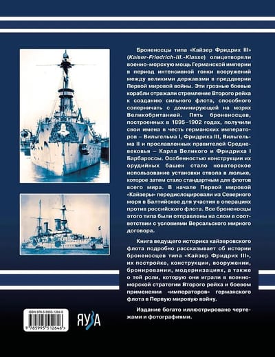 This book by a leading historian of the Imperial Navy details the history of the Kaiser Friedrich III-class battleships, their construction, design, armament, armor, and upgrades, as well as the role they played in the naval strategy of the Second Reich and the combat use of these "emperors" of the German Navy during World War I.