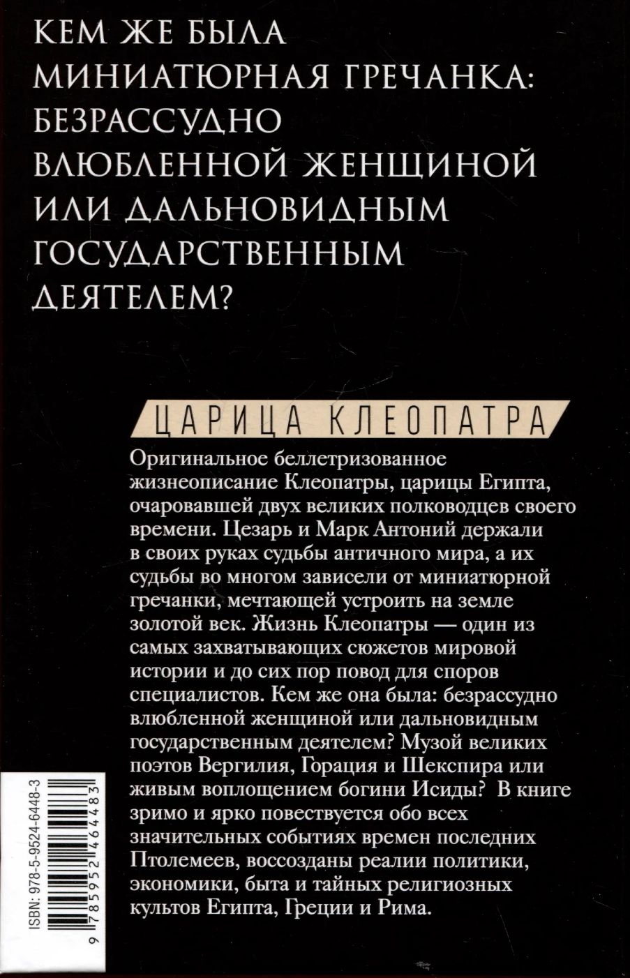 The life of Cleopatra is one of the most fascinating stories in world history. Michael Grant presents his original version of Cleopatra's life, touching upon both her public activities and her relationships with Caesar and Mark Antony. The book recreates the realities of politics, economics, everyday life and secret religious cults of Egypt, Greece and Rome.