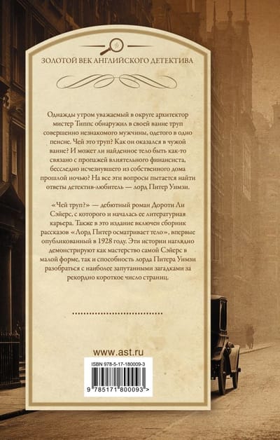"Whose Body?" is Dorothy Lee Sayers' debut novel, which launched her literary career. This edition also includes the short story collection "Lord Peter Views the Body," first published in 1928. These stories clearly demonstrate both Sayers's mastery of the short story and Lord Peter Wimsey's ability to solve the most complex mysteries in record-breakingly few pages.