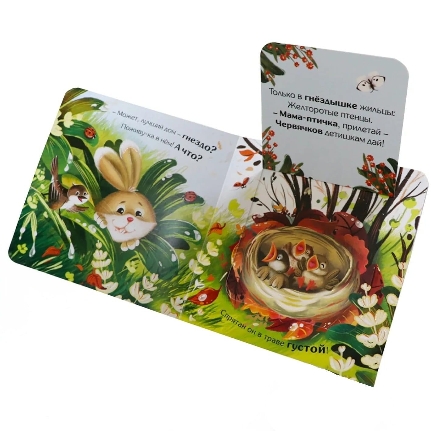 The book "Whose House Is Better?" from the "Hide and Seek for Little Ones" series features sweet rhymes, inquisitive characters, and the brightest and most heartwarming illustrations! Together with a curious bunny, your little one will explore a variety of homes: squirrels, ants, birds, and raccoons. The entire book is a story in verse that will definitely keep you interested from the first page to the last! The "Hide and Seek for Little Ones" series promises joyful moments you'll spend with your child.