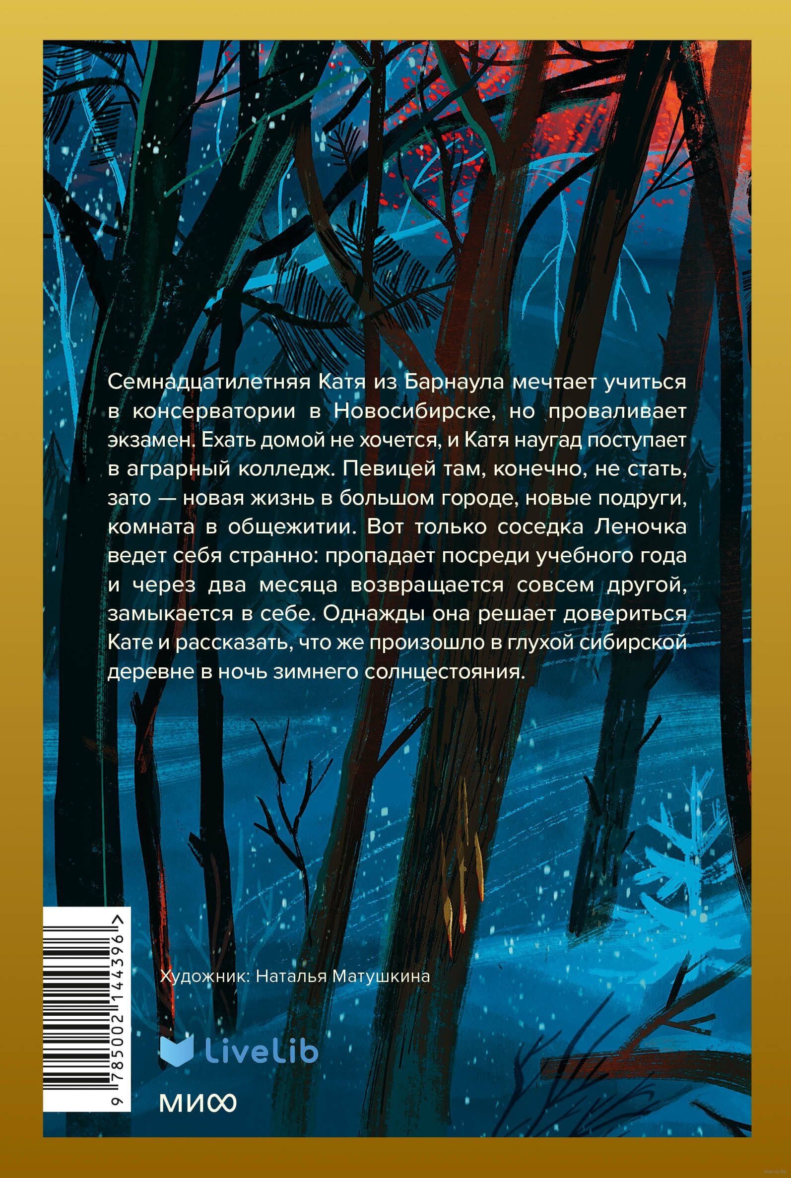 Studying at the veterinary department is very far from dreams of the stage. But it is a new life: a big city, a room in a dormitory, a scholarship, friends and fun. Except that the neighbor Lena, a girl from a remote village, behaves strangely. In the middle of the school year she disappears and two months later comes back completely different. Lenochka keeps silent about what happened to her and shuns her neighbors, but one day she decides to confide in Katya. What happened in the village of Lebyazhye, Toguchinsk region, on the night of the winter solstice and how far will Katya's secrets lead?