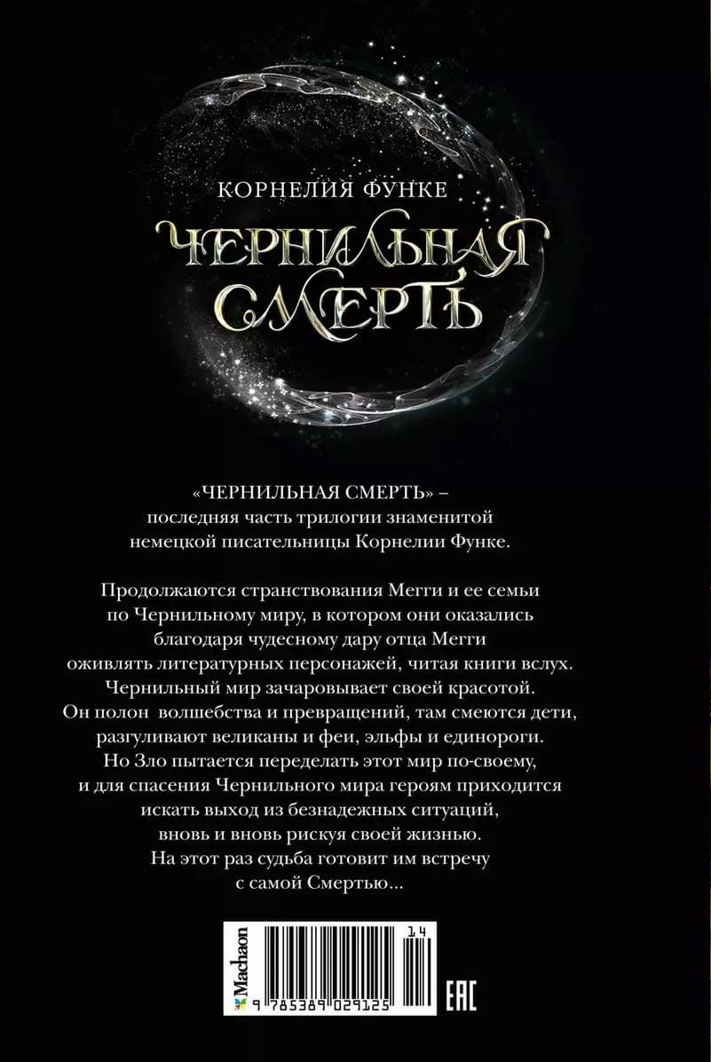 "Ink Death" is the last part of the trilogy of the famous German writer Cornelia Funke. Meggie and her family continue their wanderings through the Inky World, in which they found themselves thanks to the miraculous gift of Meggie's father to bring literary characters to life by reading books aloud. Inkworld is mesmerizing in its beauty. It is full of magic and transformation, children laugh there, giants and fairies, elves and unicorns walk around. But Evil is trying to remake this world in its own way, and to save the Inky World the heroes have to find a way out of hopeless situations, again and again risking their lives. This time fate prepares them to meet Death himself...
