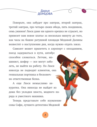 Great news for fans of the animated series "Secrets of the Honey Valley", created from the scripts of writer Darya Dontsova. Now the adventures of fabulous animals Honey Valley on the pages of colorful books. Solve detective riddles, train attention and intelligence, laugh at funny jokes and take lessons in manners from the owl Sophie. Honey Valley is a town by the sea. Here live a variety of animals: culinary genius hedgehog Marie, fashionable squirrel Lucy, melancholy and kind bear Phil and others. They have good neighborly relations, but sometimes in the city there are mysterious, sometimes inexplicable incidents. Today, Honey Valley's chief detective, Sophie the owl, is investigating the mysterious disappearance of buttons. These are not just buttons - they were decorating a dress made by the squirrel Lucy for the beautiful fox Rita. Now Lucy's reputation is in jeopardy, and Rita is left without a stunning new dress. But Sophie is sure to find the thief. And at the same time she will tell her friends how important it is to be well-mannered and neat. Don't rush to accuse others without understanding!