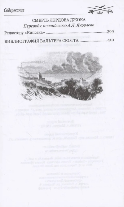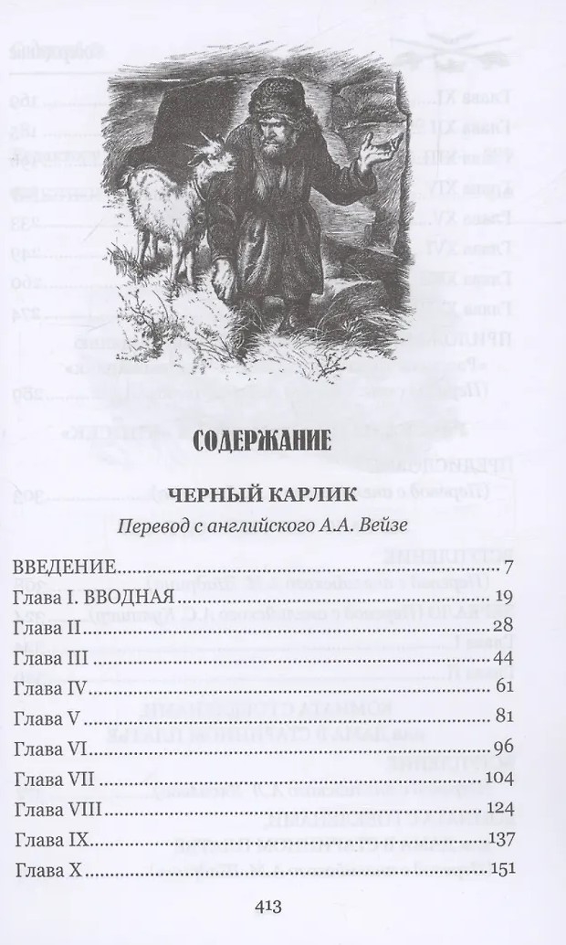 The latest volume of Masters of Adventure includes Walter Scott's mysterious novel, Black Dwarf, which tells the whole truth about the era of old Nancy, or Queen Anne, the first ruler of Great Britain and the last of the Stuart line. This publication complements the author's collection of mystical stories and legends from the almanac "Kipsek." One of them, as well as several forewords by the great Scotsman, are published in Russian for the first time.