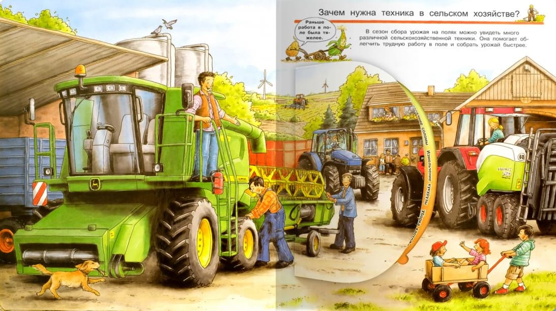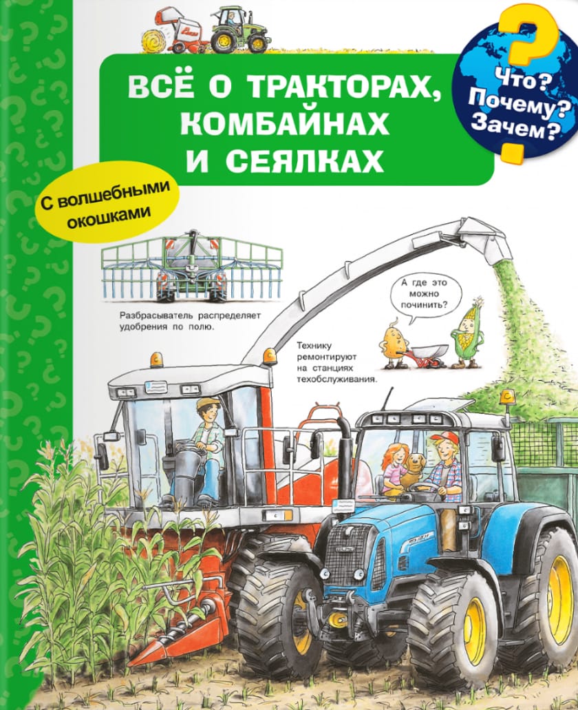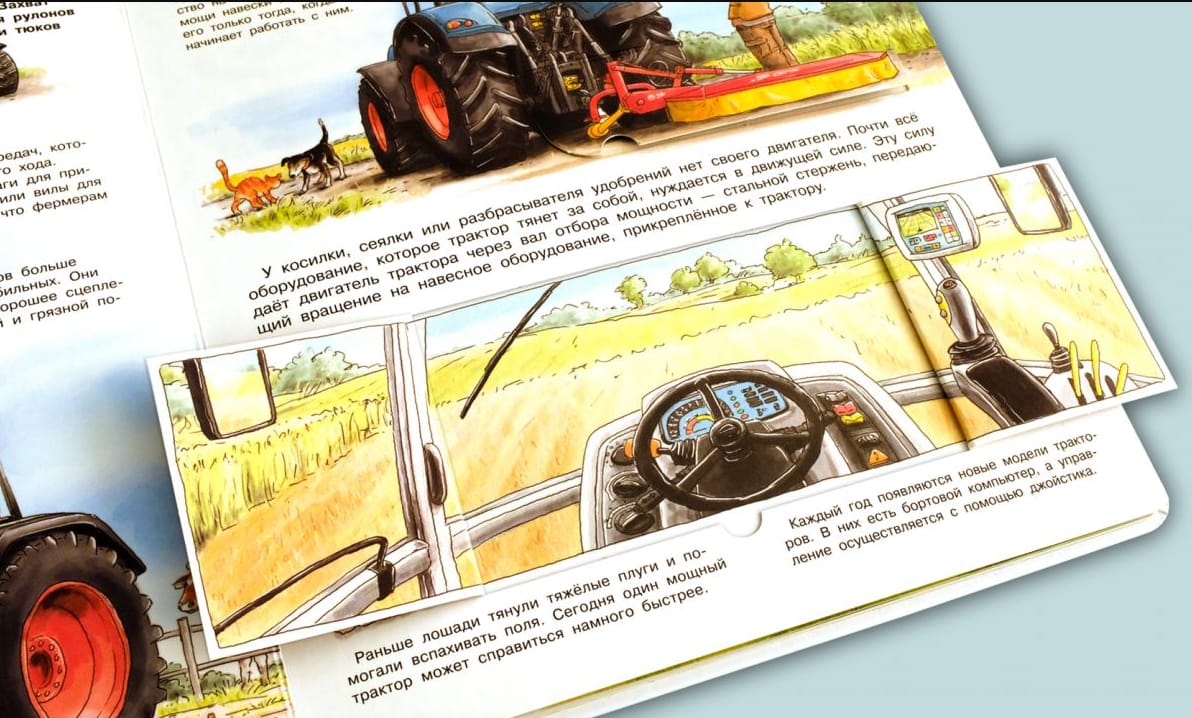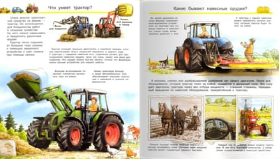 The encyclopedia with magic windows "What? Why? What for? All about tractors, combines and seeders" will tell little know-it-alls the most interesting things about modern equipment used in agriculture.