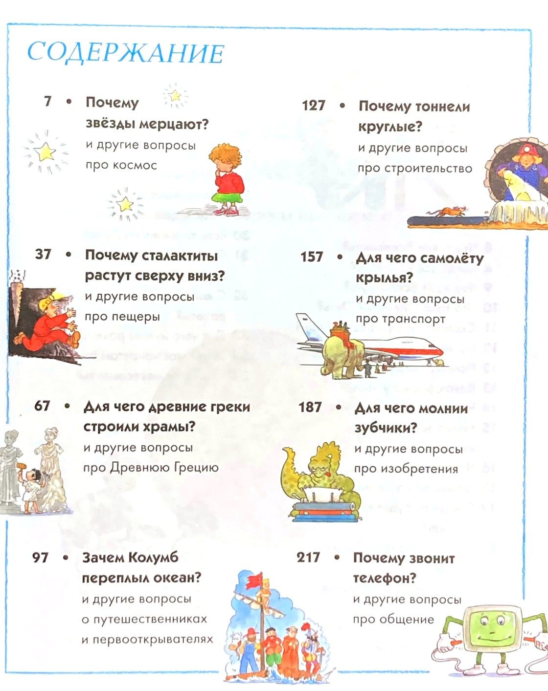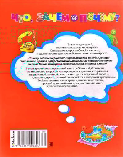 This book is for children who have reached the age of "witches". They ask questions about everything in the world, and it is not easy to satisfy children's curiosity. Why do the stars twinkle? Will the sun ever die? What is direct ether? Are there places left on Earth that have not been explored? Which cave system is the longest in the world? In this brightly illustrated book, the child will find answers to many questions: how hurricanes originate, who solved the riddle of the longest river, where is the underground city and, finally, just relax and laugh with the author and the artist. Cheerful color illustrations, concise texts, simple understandable language will turn reading the book into a fascinating activity. In this encyclopedia, the little reader will find detailed and detailed answers to questions that their parents are stumped.