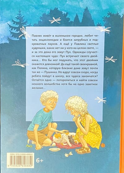 Pavlik lives in a small town, loves to read encyclopedias and is afraid of spiders in the tubes and under the bed. And Pavlik also has light curls, which no one else in the whole wide world has - and for this reason they call him Pooh at home. But one day the incredible happens: Pooh meets his double... Who would have thought that this double would be a girl! And even so stubborn and wayward as Polina, whom her relatives even call almost the same - Pushinka! She can speak Italian, is not afraid to ride the Ferris wheel and came with her mother from the big city. But she does not understand at all why - after all, adults do not like to explain their adult decisions. Polina dreams of only one miracle - to return home, and Pavlik - about swimming on an inflatable butterfly in a real pool ... and also for Polina not to leave. It seems that all it takes is a drop of magic - but what if there is almost no time left for it? What if any day now, when Pooh and Pushinka go to first grade, all the magic will end, miracles will be cancelled and childhood will end? There is only one thing left to do - hurry up!