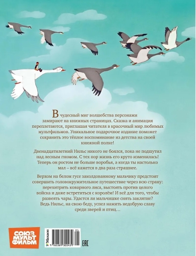 Riding a white goose, the enchanted boy must undertake a dizzying journey across the country: outwit a wily fox, stand against an entire army, and even meet the king! And all to break the spell. Will the boy succeed in breaking the curse? After all, Nils, to his misfortune, has already earned an evil reputation among animals and birds...