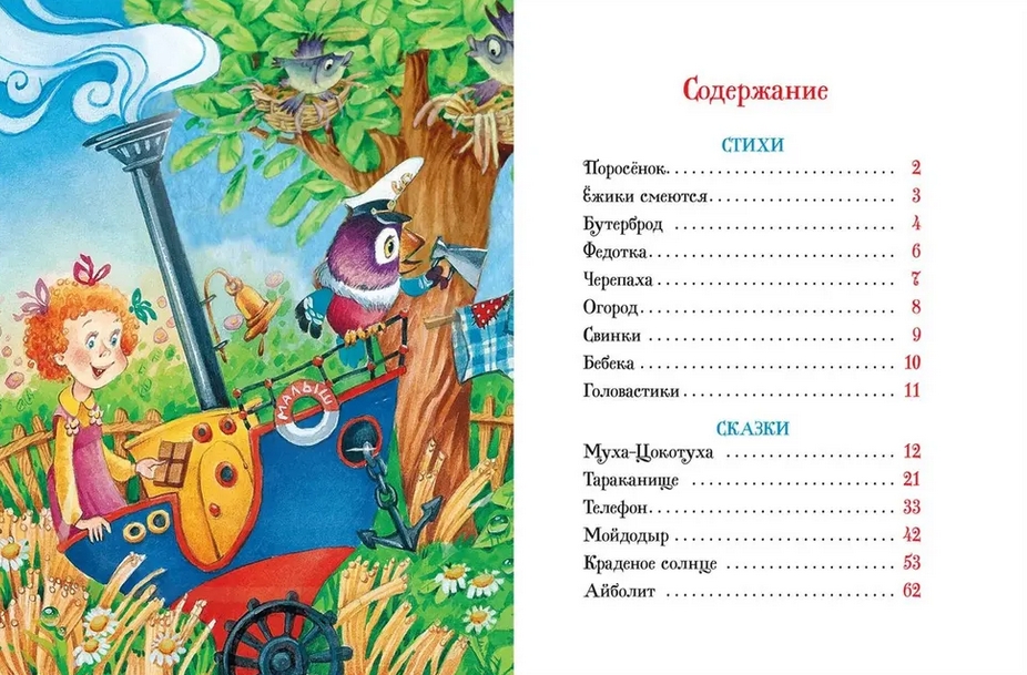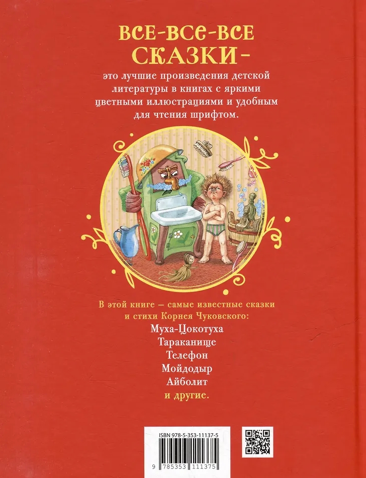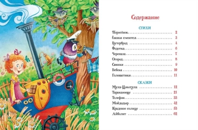 The book includes poems by the famous children's poet Korney Chukovsky, as well as beloved fairy tales in verse - "Fly-Tsokotukha", "Cockroach", "Telephone", "Aibolit" and others.