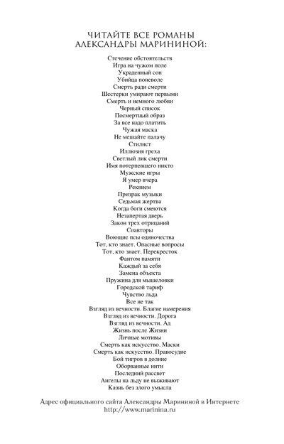 Criminal investigation officer Anastasia Kamenskaya is investigating the mysterious death of a famous writer. The wife of a businessman convicted of premeditated murder asks private detective Stasov to prove her husband's innocence... Unexpected turns and new circumstances that are revealed in these cases are mysteriously connected to each other, leading to an unexpected ending.