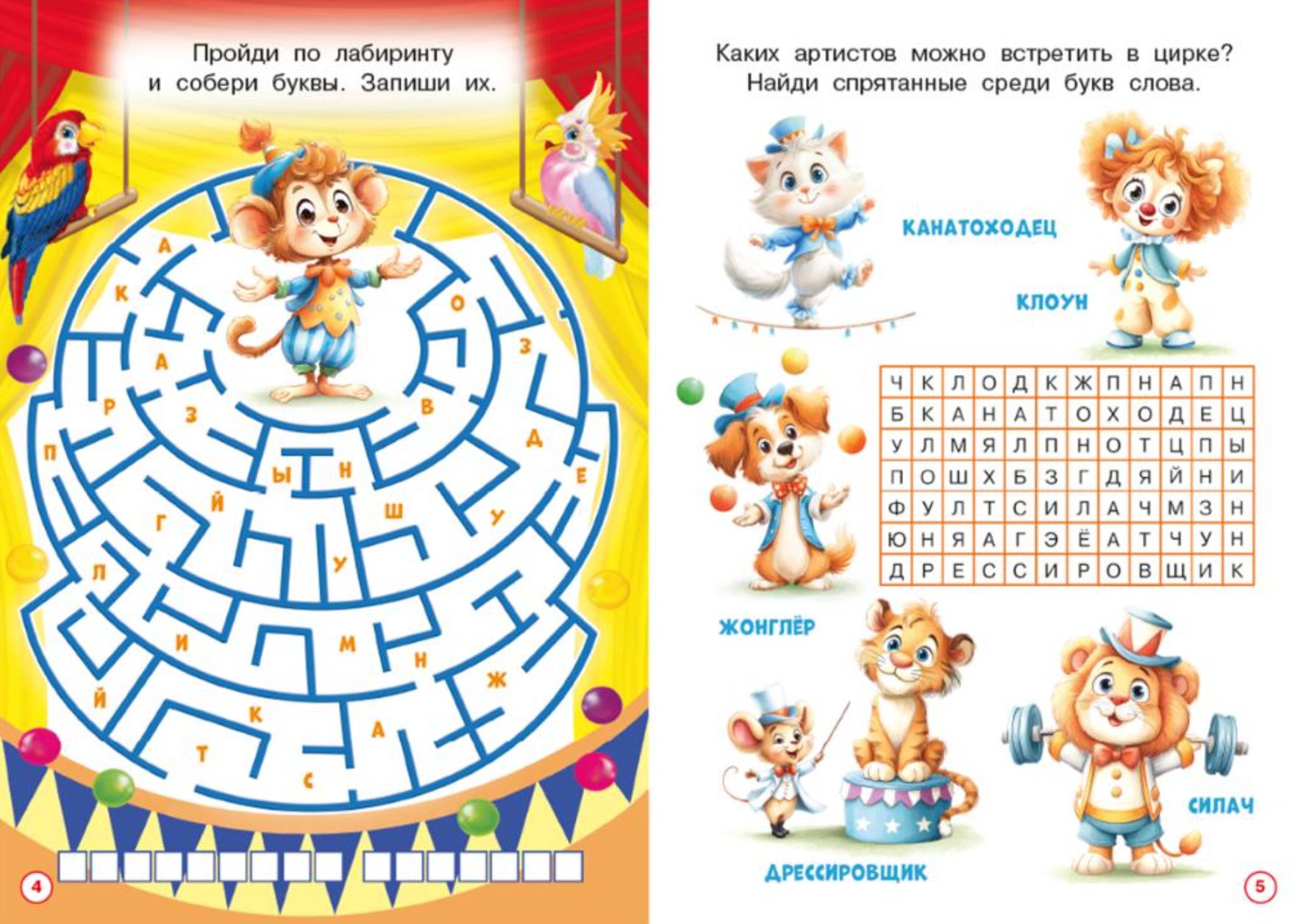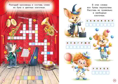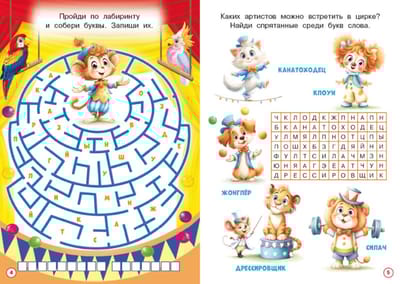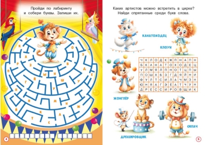 "Circus Crosswords" from the "Crosswords and Tasks" series are educational resources for inquisitive children who love to solve and discover new things. This collection includes not only crosswords but also various exercises for attention and logic. These playful books will help improve concentration and memory, and train children's patience and thinking skills. These books are convenient to take with you on the go or anywhere you need to wait. They are suitable for both parent-led and independent learning.