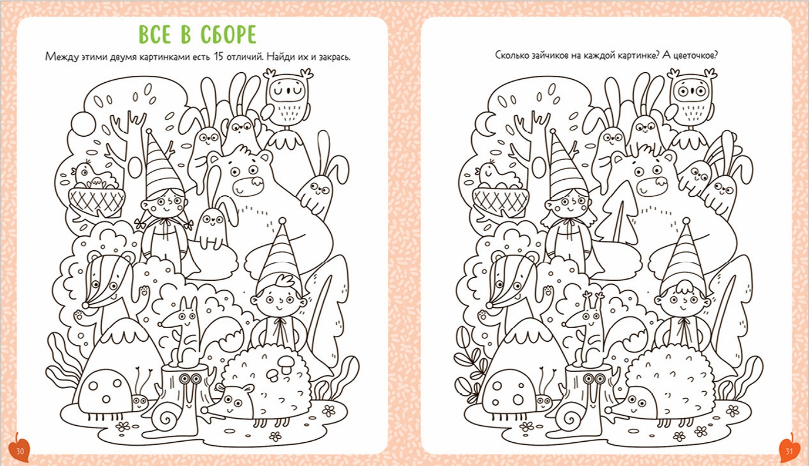 Walking through the forest with the characters Nick and Sophie, as well as their friends Klava the owl and Ludwig the snail, your little explorer will need to spot differences on the pages of the book, connect the dots, find ways out of mazes, solve puzzles, color, draw, and trace.