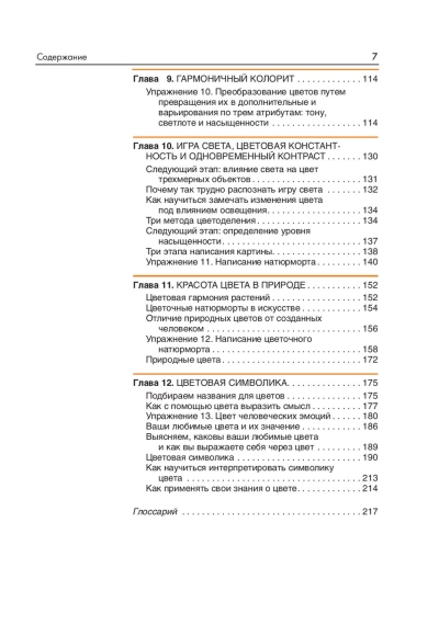 The book presents a practical method of creating harmonious combinations of Colors and shades, repeatedly tested and practiced during student seminars on working with color. There are exercises (starting from the simplest and gradually moving to the most complex), accompanied by hundreds of illustrations that will help to understand how color is organized, and learn to see what is really in front of our eyes, rather than what we know about colored objects. The book is intended for beginners and experienced artists alike. For a wide range of readers.