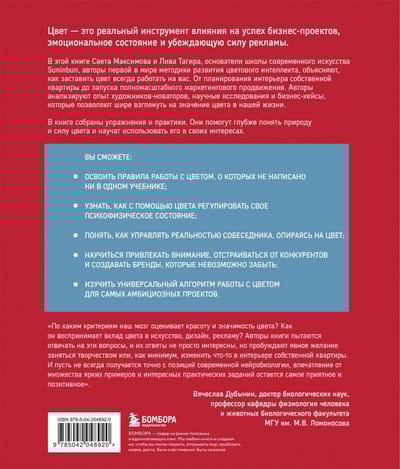 In this book, Sveta Maximova and Liva Tagira, founders of the Suninbun School of Contemporary Art and authors of the world's first Color Intelligence development method, explore this phenomenon. The authors analyze the experiences of innovative artists and scientific theories that allow for a broader understanding of the nature of color.