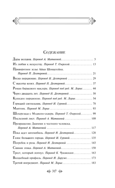 This collection includes stories with unexpected endings. Their heroes range from the "little people" of big New York to frivolous and cheerful artists and writers, from rough-and-tumble neighborhoods with their touchingly loyal girlfriends, to the inhabitants of the Wild West—cowboys, ranchers, and farmers. Their plots are always grippingly engaging, their endings swift and unexpected. They are all full of subtle humor, surprising comparisons, and unpredictable endings. The characters are noble and romantic, inventive and resourceful, optimistic and full of life, and they find a way out of any situation.