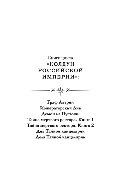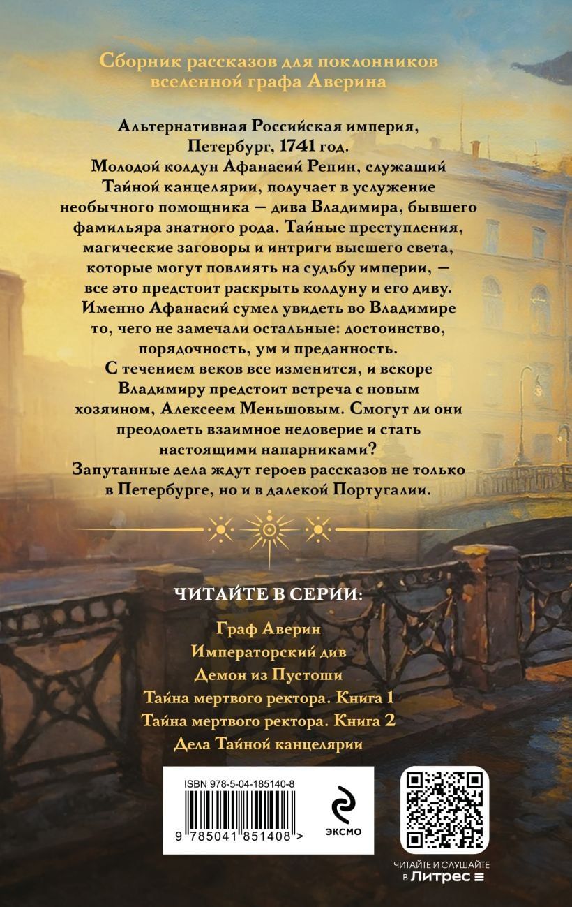 The young sorcerer Afanasy Repin, an employee of the Secret Chancellery, receives an unusual assistant—the diva Vladimir, a former familiar of a noble family. Secret crimes, magical conspiracies, and high-society intrigues that could affect the fate of the empire—all this awaits the sorcerer and his diva. It was Afanasy who saw in Vladimir what others overlooked: dignity, integrity, intelligence, and loyalty.