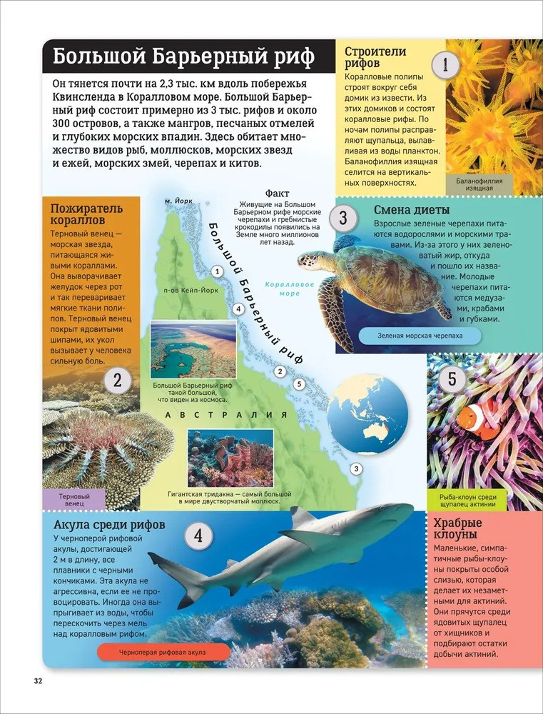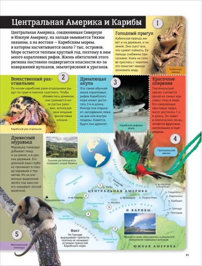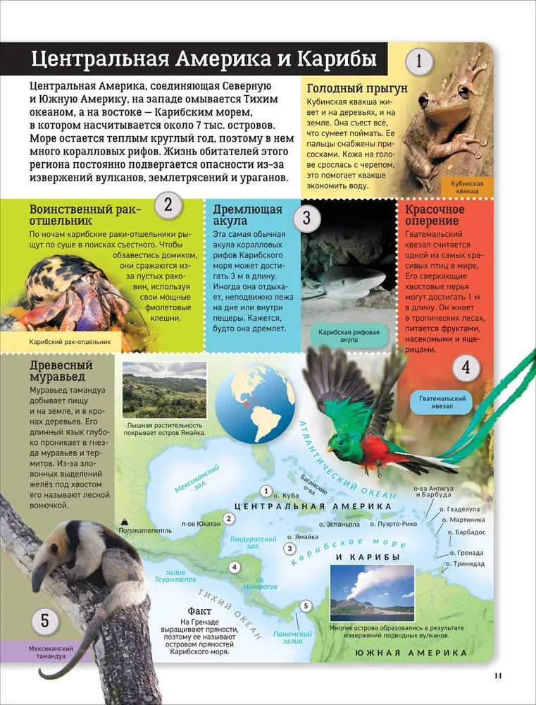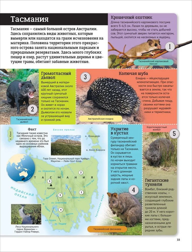 This book will tell you about all the continents of our planet and introduce you to their amazing wildlife. You'll visit emperor penguins in ice-covered Antarctica, watch jaguars in the hot Amazon rainforest, soar over the high mountains of South America with the Andean condor, and plunge into the depths of the world's oceans with the humpback whale. You'll learn about the lives and habits of animals ranging from tiny pygmy possums to giant African elephants, and how they all adapt to their environment. With colorful illustrations and accurate maps, you won't get lost on your journey!