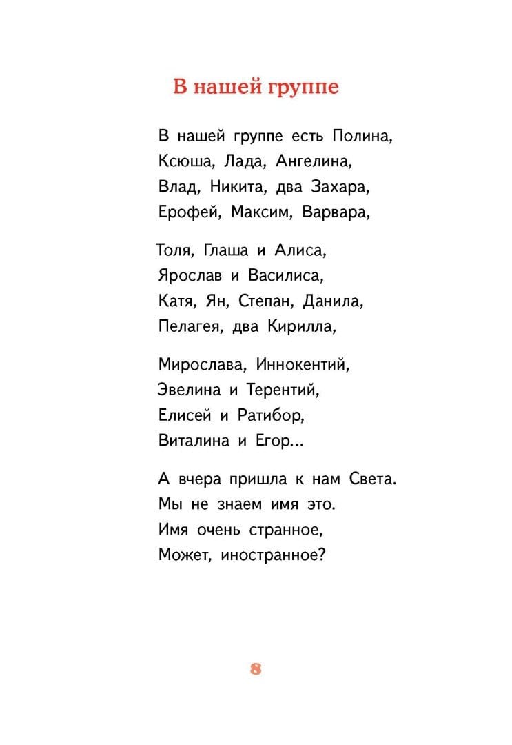 Victoria Lederman is the author of many bestsellers for schoolchildren ("The Theory of Improbabilities", "Ma(y)y Calendar", the Svetlik Tuchkin dileogy, etc.). Now it is revealed in a new genre: poems for preschoolers. Simply and without unnecessary moralizing writer tells about how important it is to cope with their emotions, respect others, care about others and friendship. Anyone who goes to kindergarten will understand: these poems - just about him!