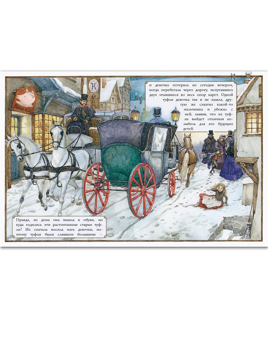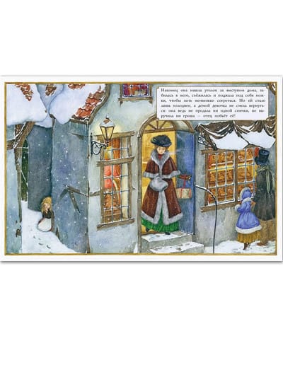 "The Girl with Matches" is the most poignant of the stories told by G. H. Andersen. It is about a poor little orphan girl forced to sell matches to passers-by on the street. On the last day of the old year, the girl does not manage to sell a single match, for the whole day she was not given a penny, and the little girl does not dare to return home, in a cold room in the attic, where she is sure to be beaten by her father. Undressed, barefoot, she sits down behind the ledge of the house directly on the snow and begins to light unsold matches-candles one after another. In the glow of the flame, the girl sees beautiful pictures that have never been in her life: a hot stove, a festive table with a Christmas goose, a magnificent Christmas tree with thousands of candles... With these imaginary pictures the girl and ascends to Heaven - "where there is no cold, no hunger, no fear"....