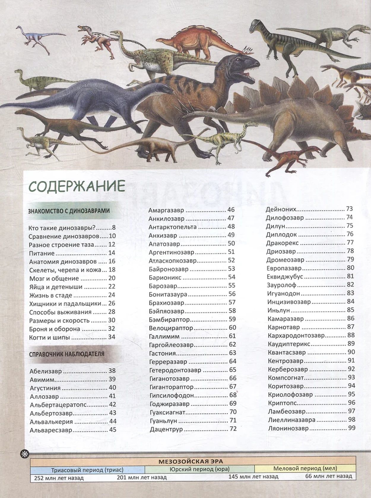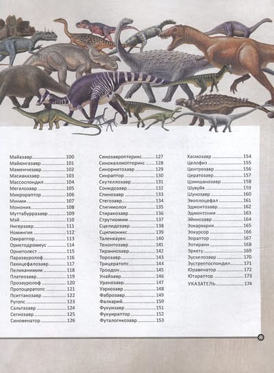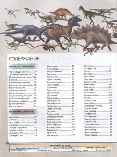 The book invites the reader to travel back millions of years to the age of dinosaurs. They are striking in their diversity: predatory and herbivorous, bipedal and quadrupedal, small and huge, covered in scales and feathers. All ancient lizards are classified by groups and families. A detailed description of each dinosaur is given: where it can be found, what it looks like, what it eats and how dangerous it is.