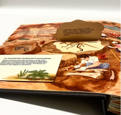 This book not only chronologically reveals all the diversity of the prehistoric world, but the dinosaurs themselves literally come to life before your eyes - after all, on each page you will find three-dimensional and movable elements! "Dinosaurs. Giants Who Lived Before the Beginning of Time" is an educational game encyclopedia that will be a wonderful gift for any holiday.