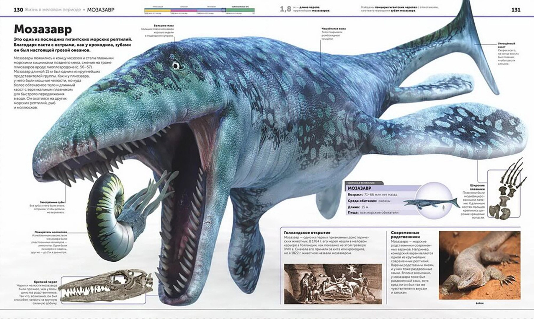 This new encyclopedia from Dorling Kindersley (DK) reveals a prehistoric world of mighty dinosaurs, magnificent saber-toothed cats, and fearsome marine reptiles. On detailed and realistic illustrations, more than 60 ancient creatures will appear before you like alive: velociraptor with murderous claws on its paws, diplodocus with the length of three buses and even snakes and small mammals - ancestors of modern animals. Thanks to modern modeling and computer graphics technologies, as well as the latest discoveries of paleontological scientists, this book has managed to collect the most detailed and up-to-date data on the appearance, life, nutrition, reproduction of dinosaurs and other incredible creatures. The perfect book for anyone who wants to fully immerse themselves in the topic of prehistoric life, the study of which continues to this day.