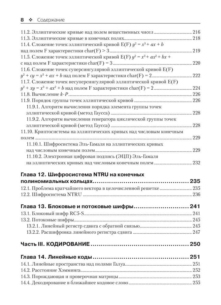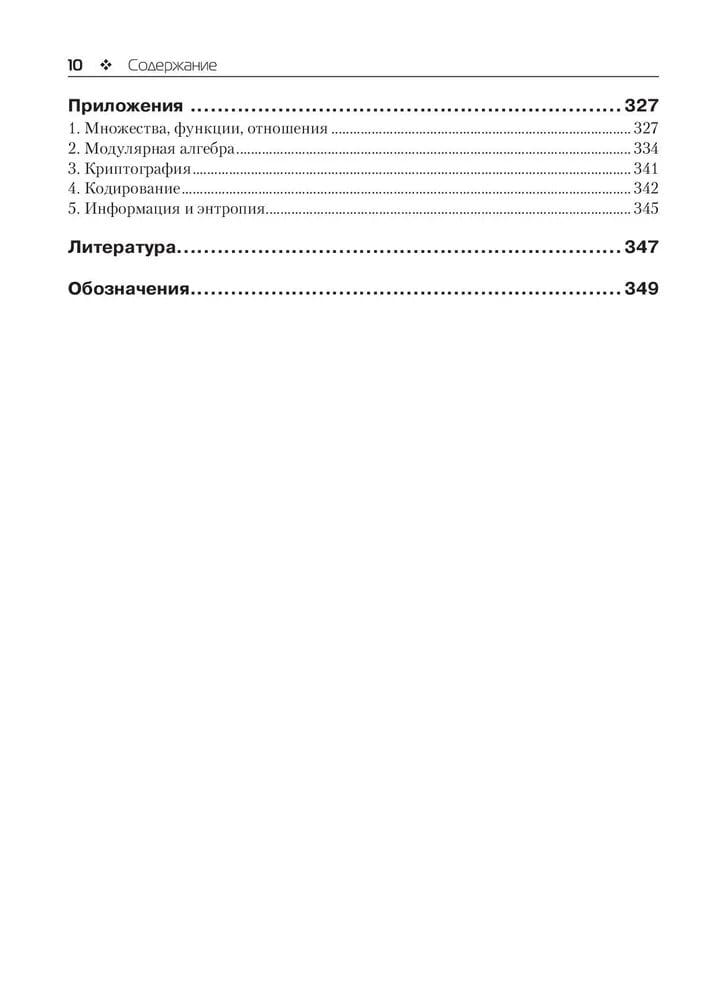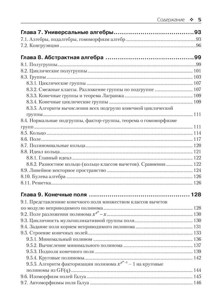 The book contains necessary information from universal and classical algebras, axiom systems for basic algebraic structures (groupoid, monoid, semigroups, groups, partial orders, rings, fields). Basic cryptographic algorithms are described. The classical noise-tolerant codes, such as linear, cyclic, and BCS, are considered. Algorithms of designing such codes are given. The book is based on the authors' long-term experience of teaching the discipline "Discrete Mathematics" at the Faculty of Business Informatics, at the Faculty of Computer Science of the National Research University Higher School of Economics and at the Faculty of Automation and Computer Engineering of the Moscow Power Engineering Institute. The book is intended for undergraduate students studying in the directions 09.03.01 "Informatics and Computer Science", 09.03.02 "Information Systems and Technologies", 09.03.03 "Applied Informatics", 09.03.04 "Software Engineering", as well as for IT specialists and software product developers.