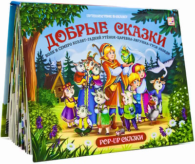 Kind Fairy Tales is a collection of beloved children's stories in a panoramic book format with 3D illustrations. This collection includes favorite stories for little ones: "The Wolf and the Seven Little Goats," "The Ugly Duckling," "The Frog Princess," and "Geese and Swans." The book is made of high-quality, thick cardboard that is highly durable and water-repellent. Bright, high-contrast printing makes the pictures truly vibrant. Delight your child with familiar and beloved fairy tales featuring 3D illustrations that will amaze them.