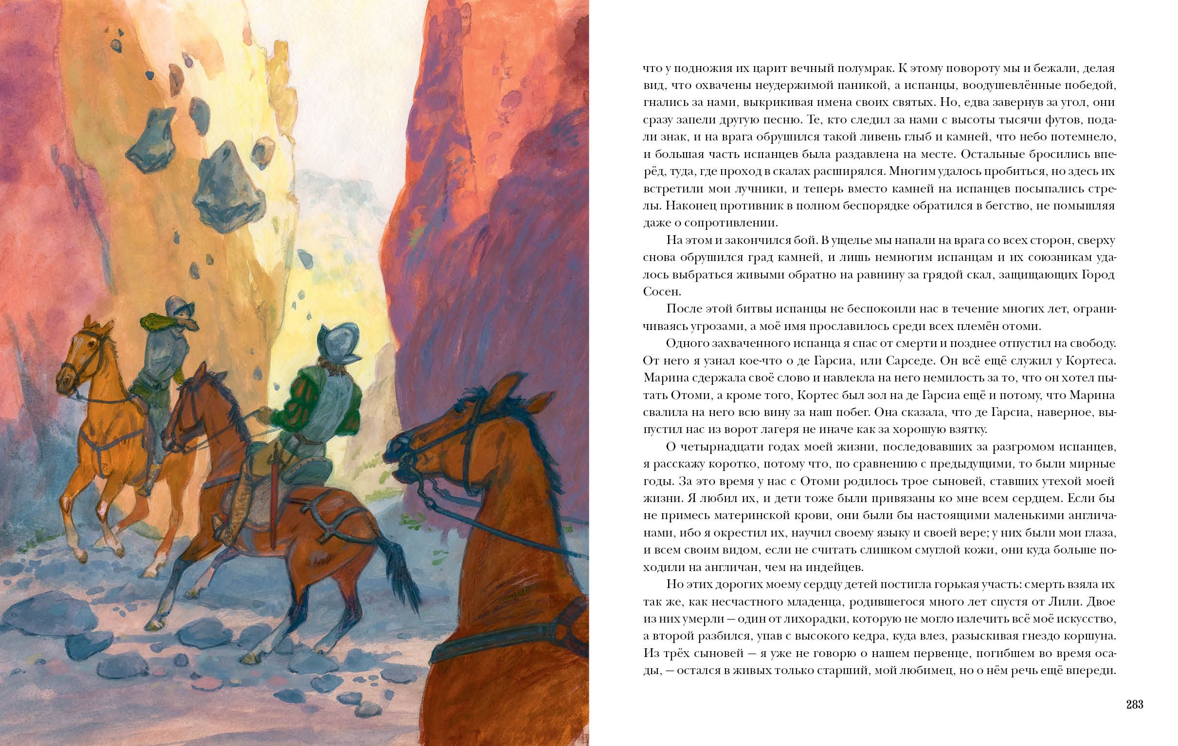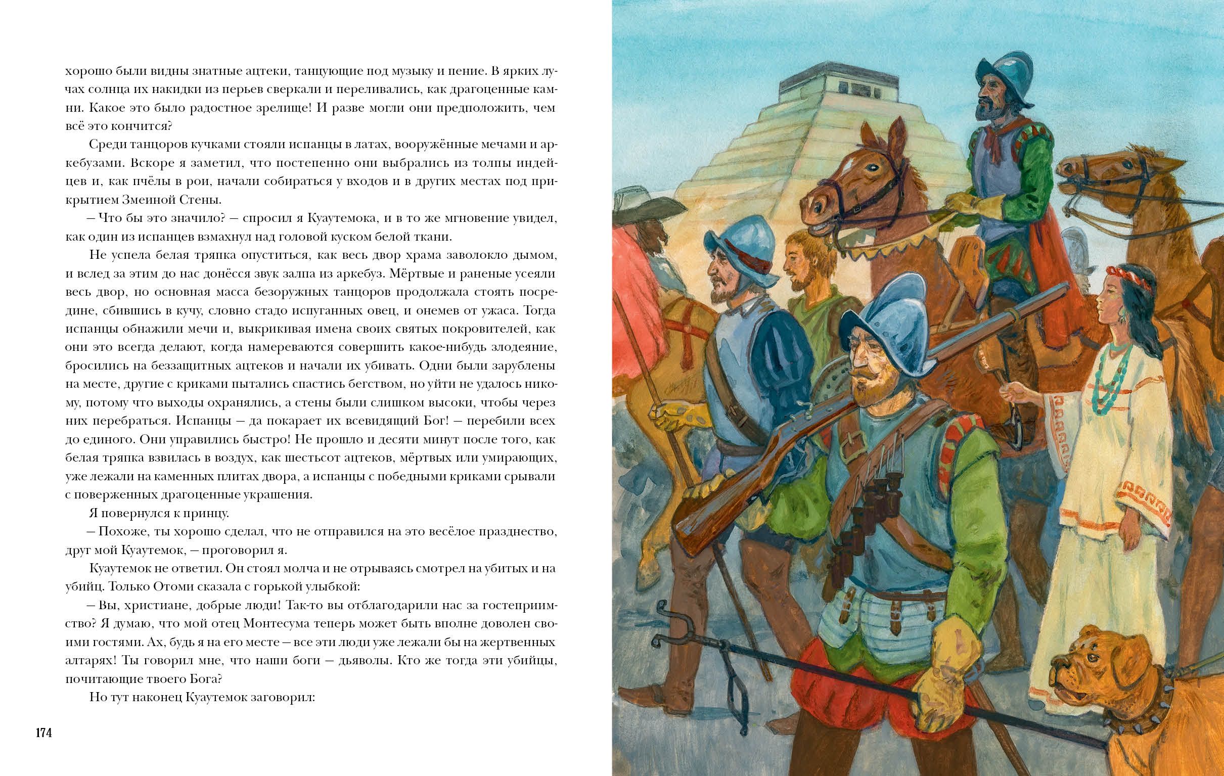 Henry Rider Haggard - English writer and author of many historical-adventure novels, the geography of which is very wide. The novel "Montezuma's Daughter" is dedicated to one of the most dramatic moments in the history of Mexico - the struggle of its indigenous population, the Aztecs, with the Spanish conquistadors led by Hernan Cortez. Young Englishman Thomas Wingfield, leaving his beloved at home, goes in search of his mother's murderer in Spain and then in America. Fate is harsh with Thomas: his ship is wrecked, the young man falls into the hands of the Indians and becomes the husband of Otomi, daughter of the Aztec Emperor Montezuma. On this incredible adventures of the Englishman does not end - he will have to fight with the Spanish conquerors, endure torture and rule the Indian tribe ... But despite everything, Thomas will remain a man who keeps his word and keeps his honor and dignity. Realistic illustrations by Sergei Yarovoy perfectly convey the atmosphere of the book.