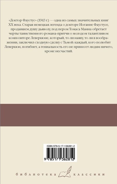 "Dr. Faustus" (1943) - one of the most significant books of the twentieth century. The old German legend of Dr. Johann Faustus, who sold his soul to the devil, under the pen of Thomas Mann acquires the features of a mysterious novel-parable about a young talented composer Leverkühn, who, whether in reality or in imagination, made a similar deal with the Darkness: everyone who loves Leverkühn, will die, and his genius will bring people nothing but misfortune.