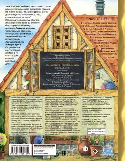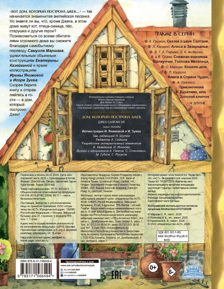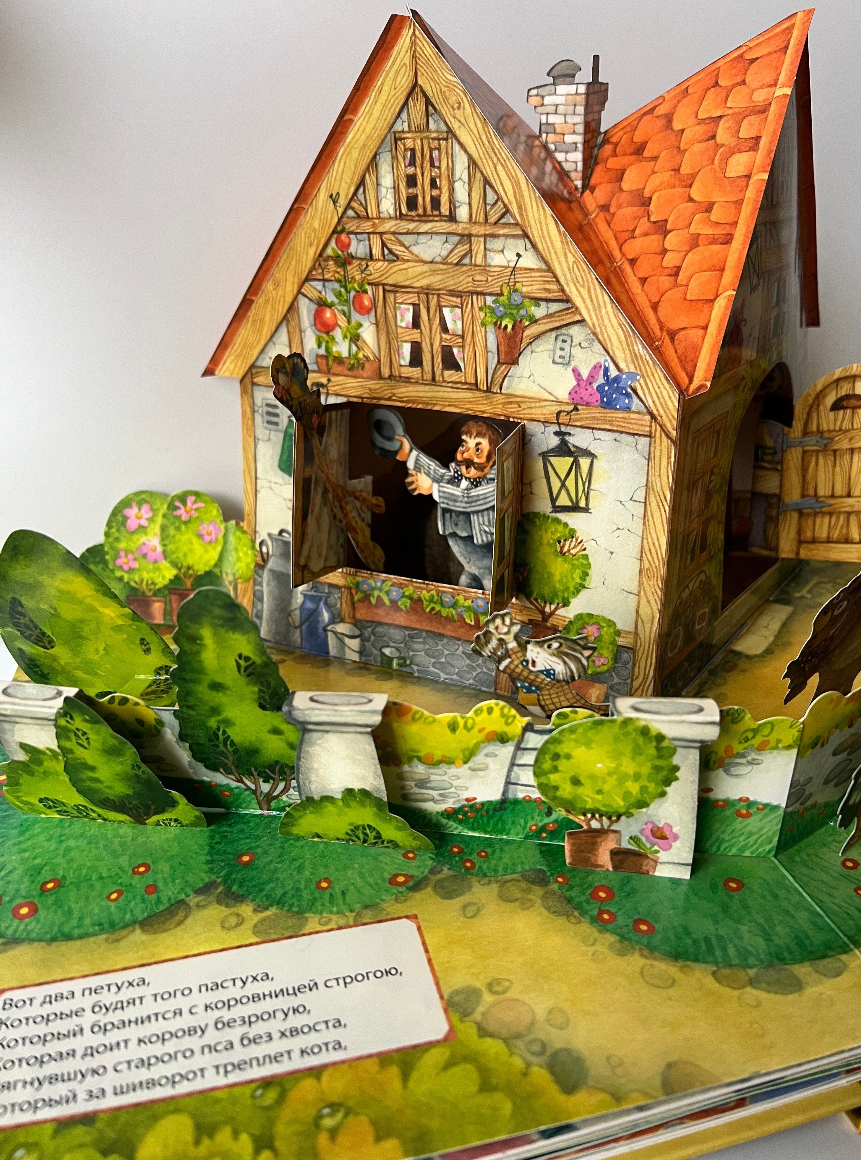 "This is the house that Jack built..." - this is how the famous English song begins. But did you know that, besides Jack, a cat, a titmouse, a dog, an old woman and other characters live in this house? You will be able to get to know all the inhabitants of the huge house thanks to the original translation by Samuil Marshak, the amazing three-dimensional constructions of Ekaterina Kazeikina and the bright illustrations