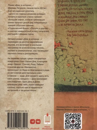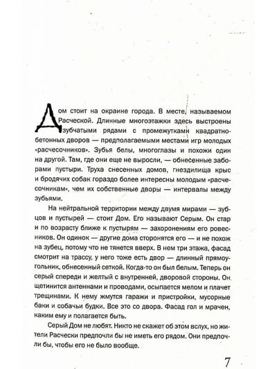On the outskirts of the city, among the standard new buildings, there is the Gray House, where Sphinx, Blind, Lord, Tabaki, Macedonian, Black and many others live. It is unknown whether Lord really comes from a noble family of dragons, but Blind is really blind, and Sphinx is wise and mysterious. Tabaki, of course, is not a jackal, although he likes to profit from other people's property. Each of them has their own nickname in the House and each of them lived in it in one day as much as we sometimes do not live in the Outside in a lifetime. The House accepted or rejected everyone. The House kept a lot of secrets, and the banal "skeletons in the closet" are just the most understandable corner of the invisible world, where there is no way from the Outside, where the usual laws of space-time cease to apply. The House is something much more than just a boarding school for children abandoned by their parents. The House is their separate universe.