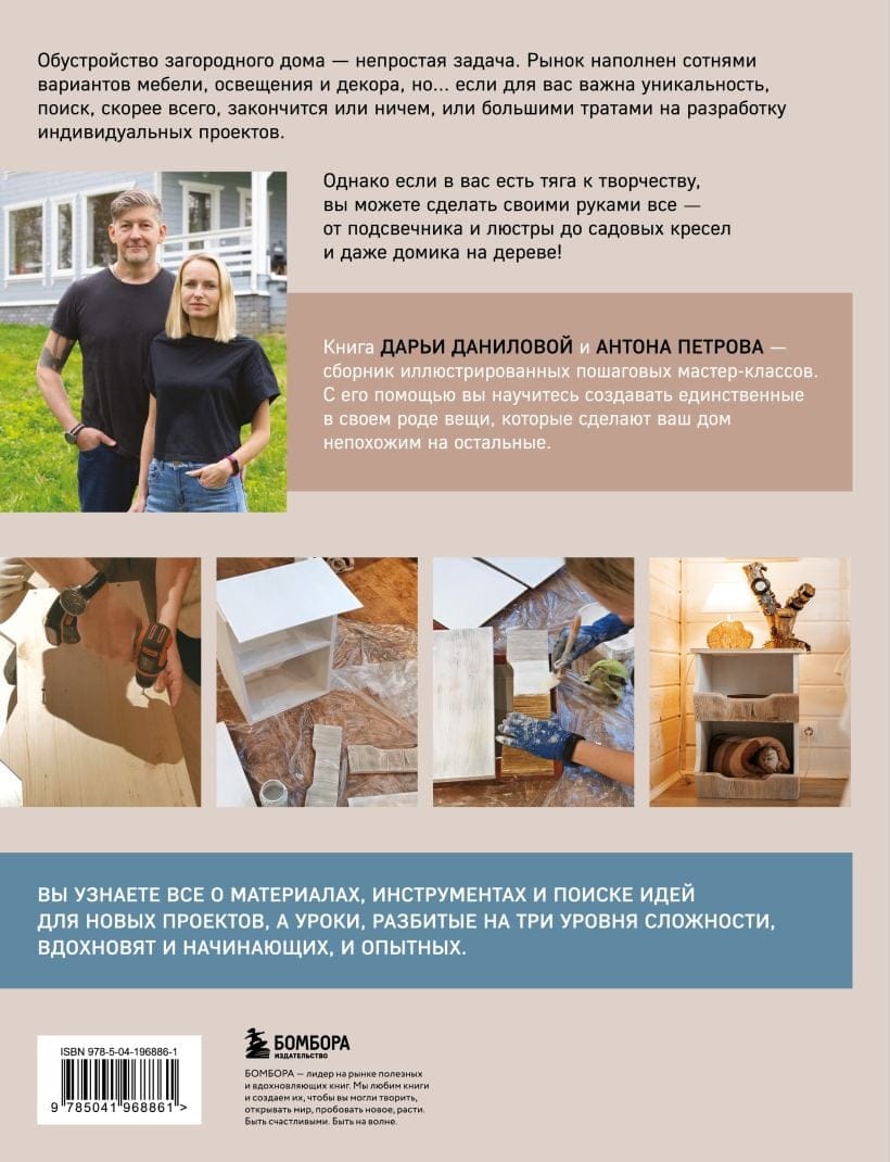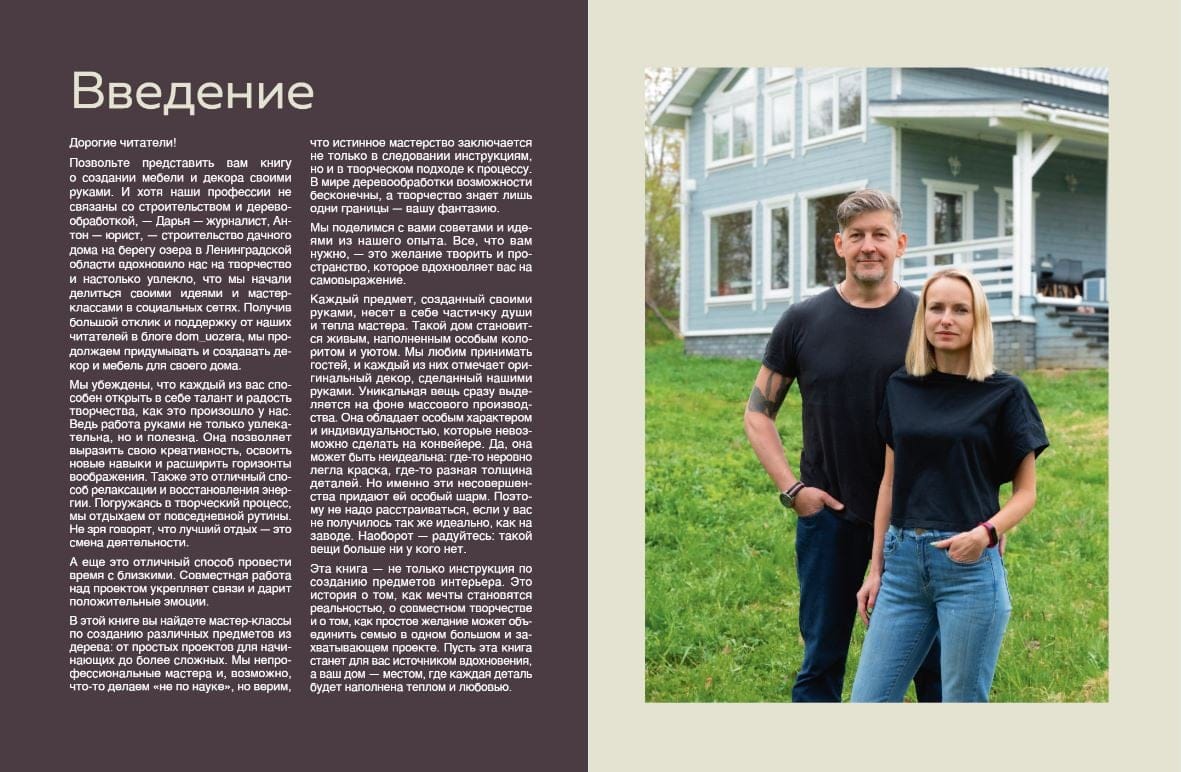 But what if... you do everything yourself? It seems too complicated and nothing will work out? Daria Danilova and Anton Petrov, authors of the book and blog dom_uozera, will prove that there is nothing impossible for a creative person. Having built a country house on the shore of a lake, they themselves came up with and created furniture and decor for it, which inspired their readers. They will inspire you too!