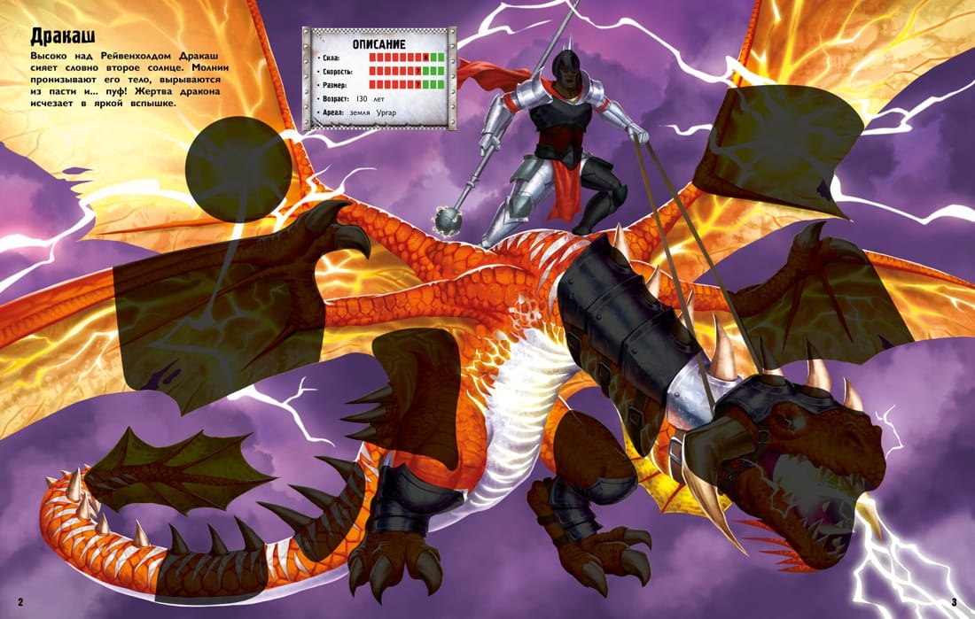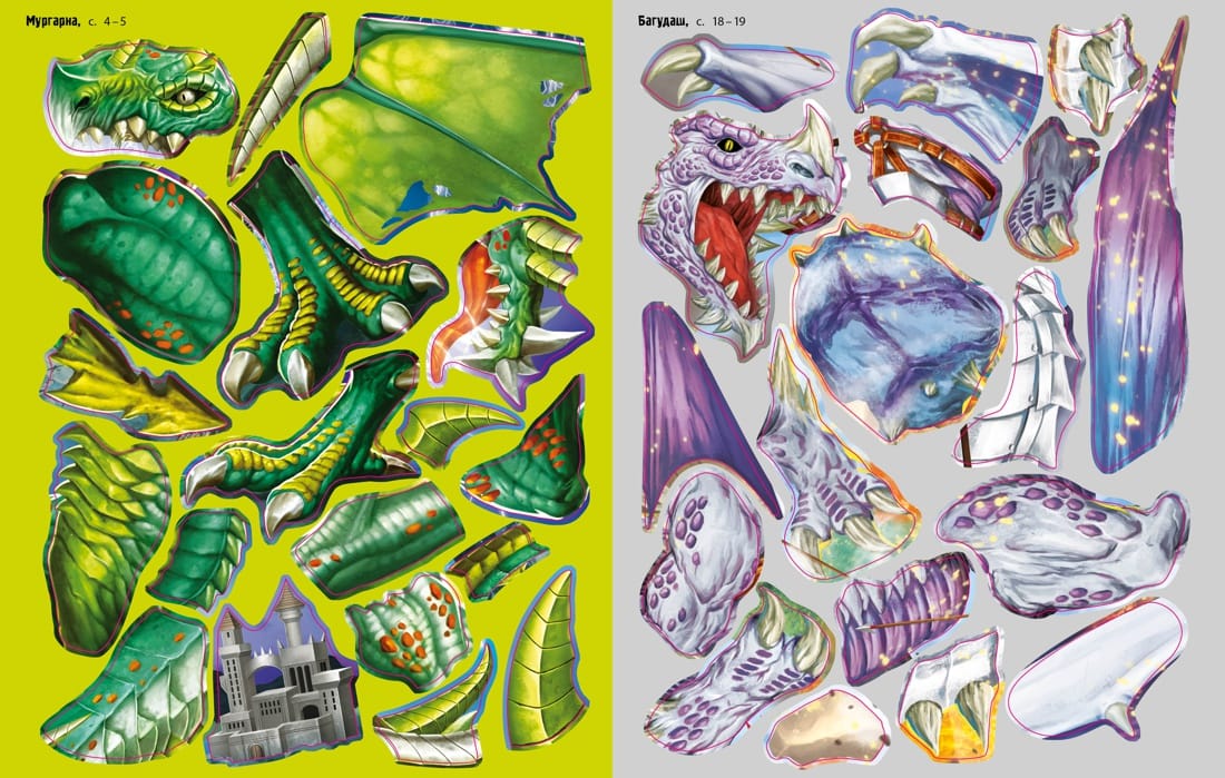 Welcome to the wonderful world of dragons! These magical creatures are famous for their monstrous strength and incredible speed. They drink lava from volcanoes, spew lightning and flames, and are also very fond of gold. Dragons can be found in icy caves, dense forests and dark sea waters. Complete each image with colorful stickers and learn what the mysterious creatures look like. Read and play! Develop attention, imagination, fine motor skills and artistic taste.