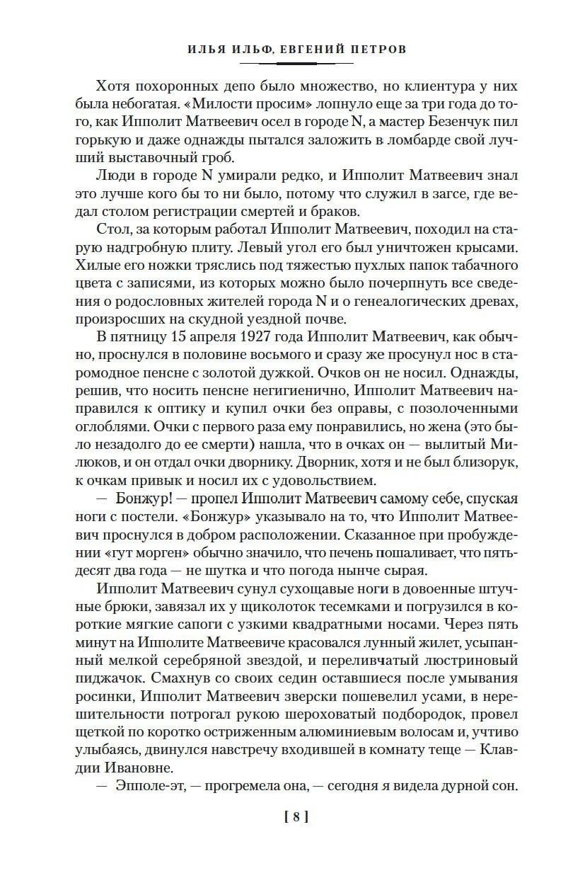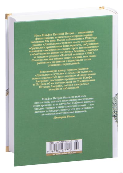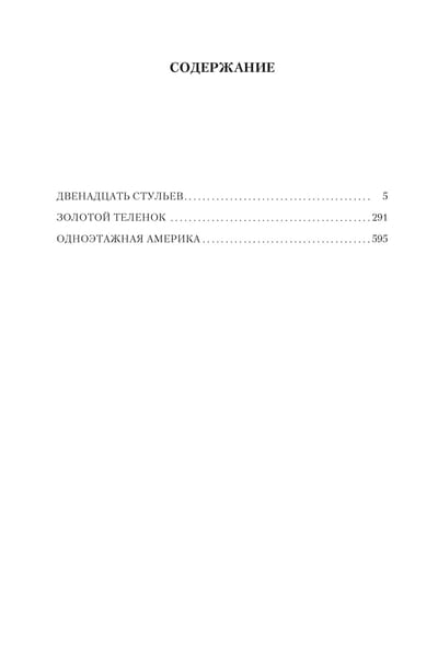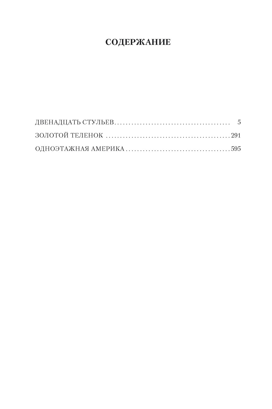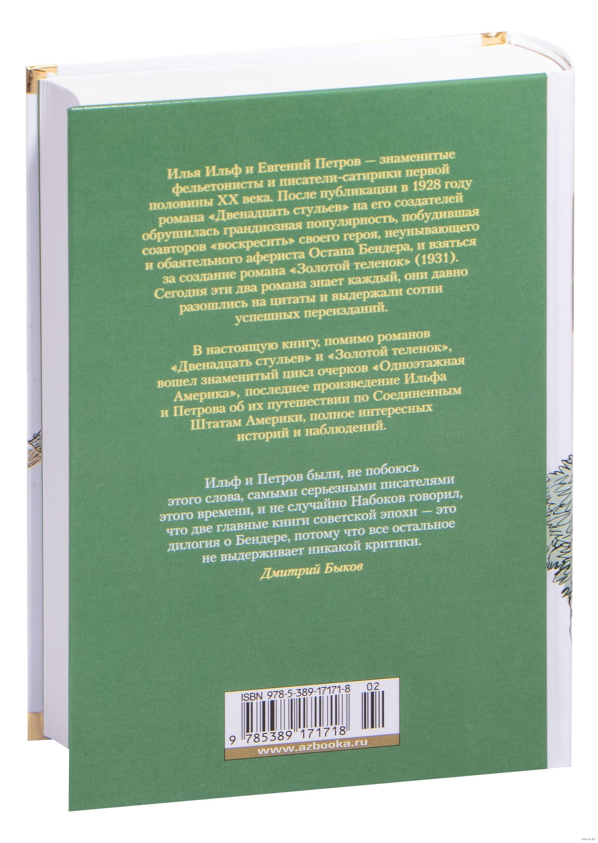Ilya Ilf and Yevgeny Petrov were famous feuilletonists and satirical writers of the first half of the 20th century. After the publication of the famous novel "The Twelve Chairs" in 1928, its creators were hit by a tremendous popularity, which prompted the co-authors to "resurrect" their hero, the irrepressible and charming swindler Ostap Bender, and take up the creation of the novel "The Golden Calf" (1931). Today, everyone knows these two novels, they have long been divided into quotations and have endured hundreds of successful reprints. This book, in addition to the novels "The Twelve Chairs" and "The Golden Calf", includes the famous series of essays "One-Story America", the last work of Ilf and Petrov about their journey through the United States of America, full of interesting stories and observations.