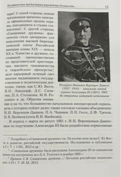This book examines the activities of the heads of the guard (palace commandants) of Nicholas II in the context of the court and state-political life of the Russian Empire in the late 19th and early 20th centuries. In addition to their direct official duties, the palace commandants had the almost exclusive right to make unscheduled reports to the monarch, which allowed them to convey ideas to the emperor and act as consultants or advisors. A wide network of connections within the court and bureaucratic circles allowed the "bodyguards of the empire" to actively intervene in the implementation of domestic policy, attempting to influence the appointment of their protégés to senior government positions, and regulating relations between various court factions. The reader is introduced to the characters of the palace commandants P. P. Hesse, D. F. Trepov, V. A. Dedyulin, and V. N. Voeikov, as well as the heads of the guard who temporarily performed these duties. As personal associates and close collaborators of Nicholas II, they thus constituted the last autocrat's collective alter ego.