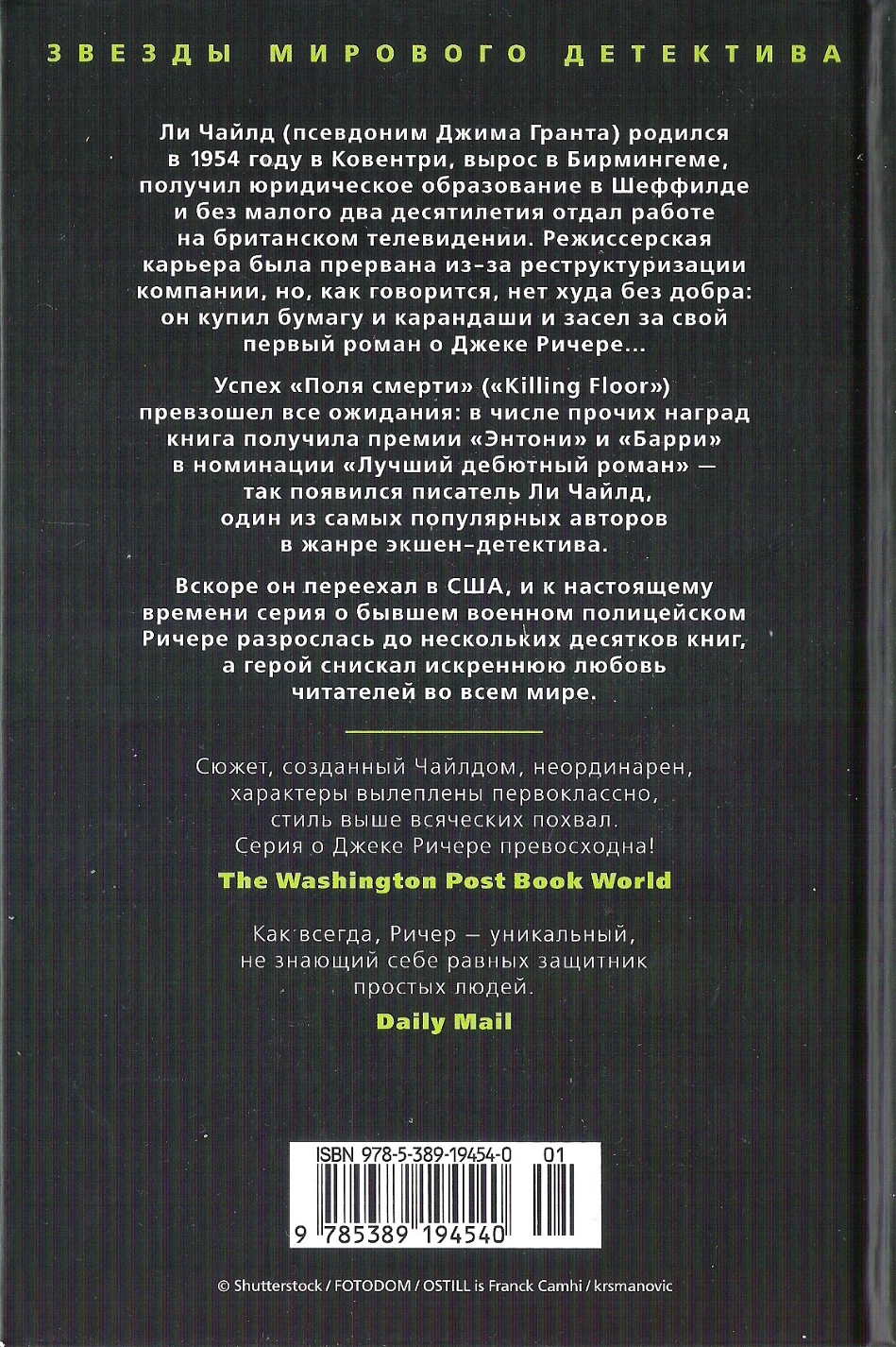 When Jack Reacher has nowhere to go, he relies on a tried-and-true principle: go anywhere, no matter where. One day, a nomadic life brings him to an obscure Tennessee town. Jack doesn't plan to linger longer than a quick breakfast at the cafe, but suddenly his instincts as a private detective and former military officer sound the alarm: a passerby, caught by chance, is about to fall into a trap. Four against one. This means Reacher can't help but get into a fight. It's his signature style of conflict resolution. Rule number one: if you don't know what you're in for, make sure Jack Reacher stays on your side.