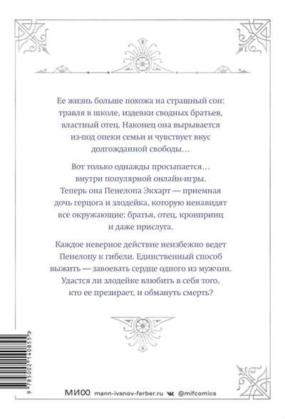 This is the story of a girl who becomes strong in unbelievable circumstances. She lives an ordinary life, faces problems that are familiar to everyone: misunderstanding on the part of parents, love worries, loneliness. Until one day she wakes up Penelope Eckhart, the main villain in a popular online game - strong, daring and principled. Everyone around her hates her, considers her a lowlife and wishes her death. Every wrong word or deed of the girl - a risk. To survive, she needs to win the sympathy of one of the male characters. However, this is not easy at all, because they are all set against Penelope. Will she be able to deceive death itself?