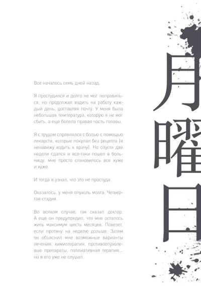 A young postman's days are numbered. Torn from his family and living alone with his cat, Cabbage, he was unprepared for the terrible diagnosis: he has only a few months to live. But before he can put his affairs in order, the devil appears with a most unusual offer. A dark force promises to prolong the dying man's life, but in exchange for every additional day, one thing in the world will vanish without a trace... And so begins a very strange week, pushing the young postman and his beloved cat to the brink of existence.