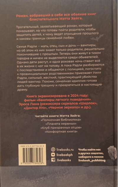 The Radley family—mother, father, son, and daughter—are vampires, but only the parents, who have decisively broken with their past, know this. Now they live in a quiet town, undistinguished from the ordinary people. However, the children grow up, and one fateful night turns everything in their lives upside down. While the Radleys deal with the consequences and deal with the police, Will Radley, a strong, tough, and murderous vampire, arrives to visit their provincial relatives. It seems the family idyll is about to develop a deep crack and turn into real drama. A novel that captures all the charm of the brilliant Matt Haig's books.