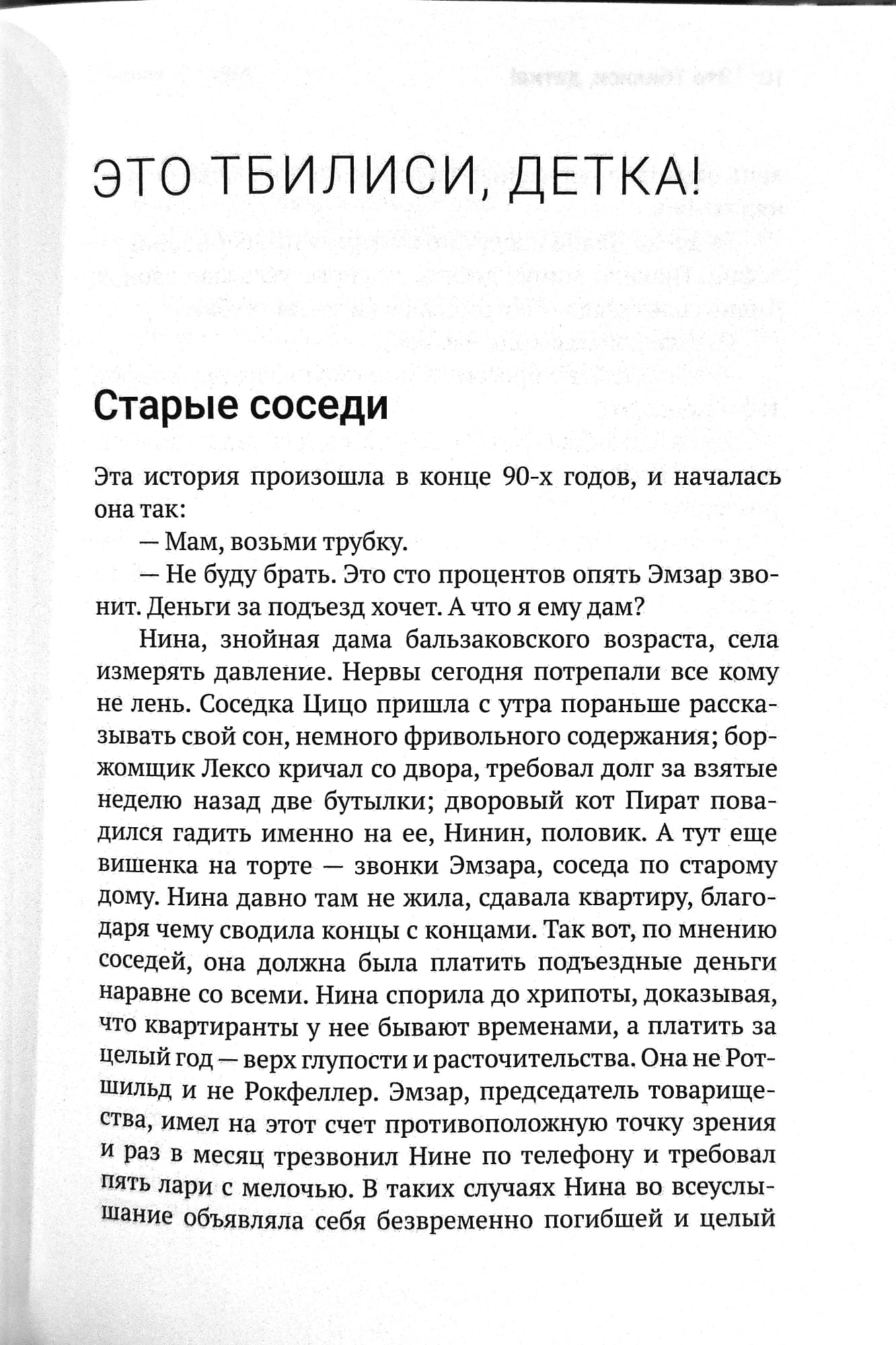 Maria Sarajishvili's stories will surely make the reader fall in love with Georgia—a country both exotic and relatable in its Christian spirit, generosity of soul, and warmth. You'll immerse yourself in the rich atmosphere of modern-day Tbilisi: bustling markets and courtyards where friends and neighbors meet, home-cooked meals and family squabbles, ancient traditions and new realities, dramatic twists and turns and humor—all seamlessly blended in this talented writer's prose.