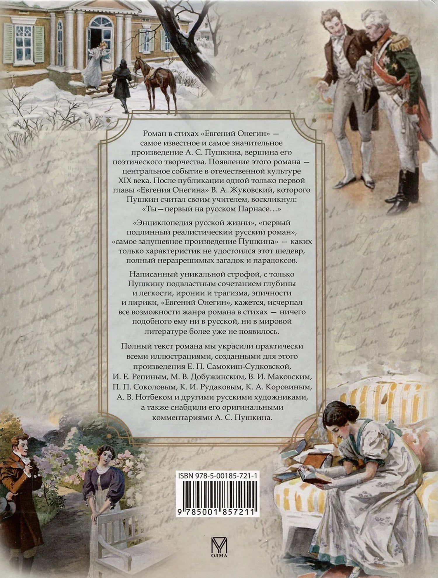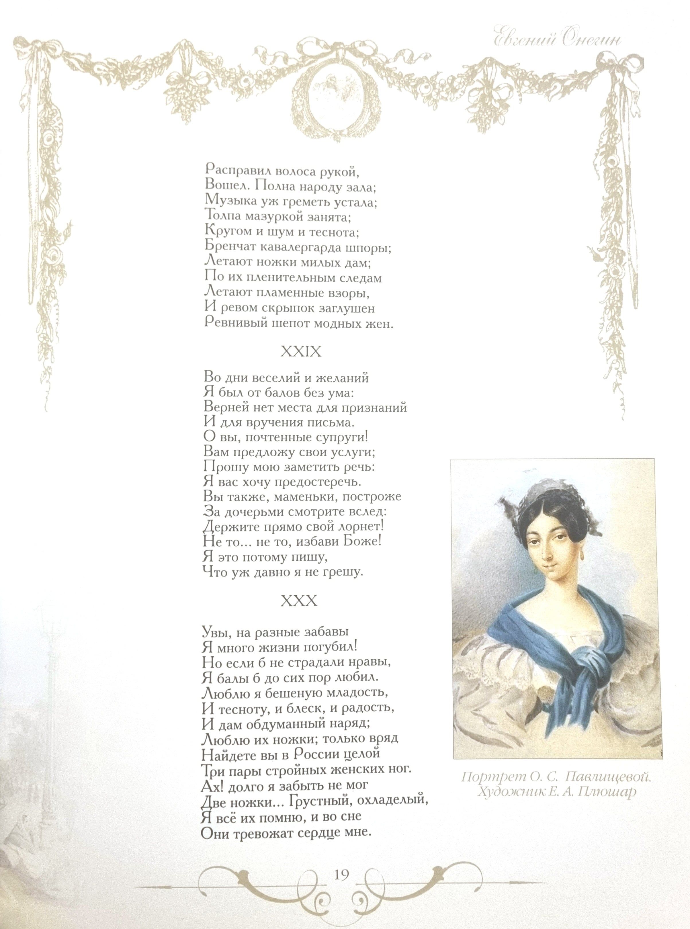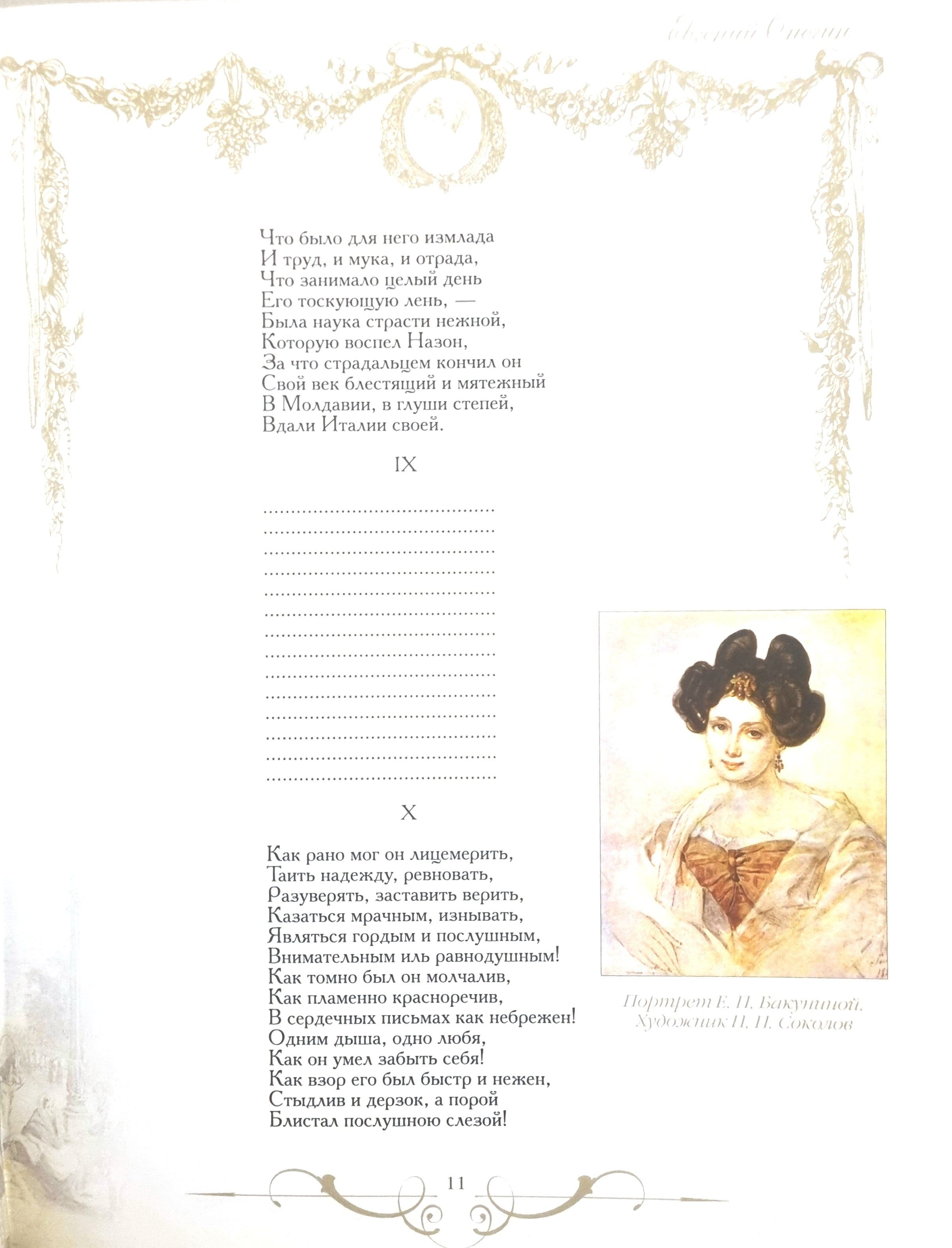 The novel in verse "Eugene Onegin" is the most famous and most significant work of A. S. Pushkin, the pinnacle of Russian poetry and the subject of numerous studies. Pushkin began writing the novel in May 1823 and finished it only in the autumn of 1831, when "Onegin's Letter to Tatyana" was written. In the autumn of 1823, he told his friends: "... Now I am writing not a novel, but a novel in verse - a devilish difference..." Entertaining, light, based on a love story conveyed in the manner of a confidential conversation between the author and the reader, and at the same time full of insoluble paradoxes and mysteries. The contradictions and multidimensionality that make up the very essence of Pushkin's novel attract new generations of readers, allowing them to discover new meanings in it.