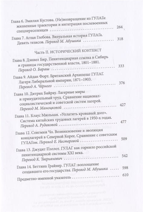 In this book, researchers from the United States, France, Germany, South Korea, and the United Kingdom examine the Gulag as a distinct historical and cultural phenomenon. The Soviet camp system is presented in a wide variety of specific manifestations and compared to similar systems in different countries and eras, from India and Africa in the nineteenth century to Germany and North Korea in the twentieth century. Readers will learn the stories of prisoners and guards, discover how the food distribution system was organized, delve into a visual history of the camps, and become convinced that the Gulag had not only deep historical origins and multiple typological parallels, but also long-term consequences. By placing the Soviet camp system in a broad historical, geographical, and cultural context, the authors of this book provide Russian readers with a new, outsider's perspective on the many social, legal, moral, and other phenomena of Soviet life, thus opening new horizons for understanding the history of the twentieth century.