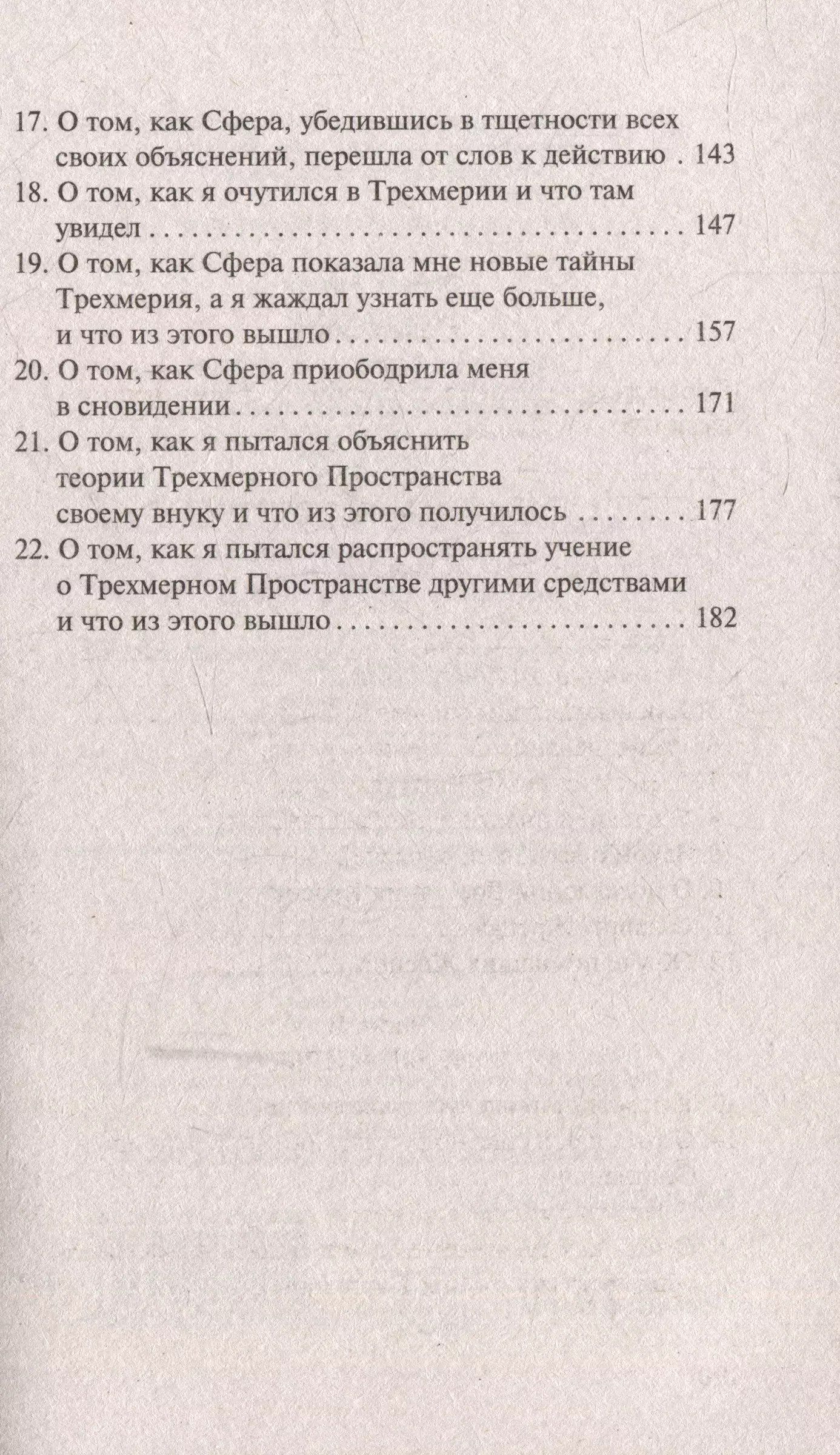 In the two-dimensional world of Flatland, where the social status of the inhabitants depends on the number of Right Angles, a member of high society, Square, has strange dreams of other realities. He finds himself in a one-dimensional world, where he unsuccessfully tries to explain the existence of the second dimension to beings unable to look beyond the eternally straight line, and experiences the visit of a mysterious Sphere from the three-dimensional world, once in a millennium trying to reveal to Flatlanders the existence of Space....