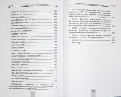 The first part of the manual tells about dry cargo, cargo-passenger, passenger and sailing vessels that were part of the Estonian State Shipping Company NKMF of the USSR for 1940-1945. A detailed historical reference for each ship, brief technical and operational characteristics are given.