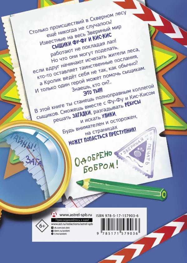 There have never been so many incidents in the Bad Forest! But what can they do when the forest inhabitants start disappearing, someone leaves mysterious messages, and Rabbit doesn't behave as usual? Only one hero can help them. Do you know who he is? It's you!!! In this book, you'll become a full-fledged colleague of the detectives. Together with Foo-Foo and Kitty-Kitty you can solve riddles, solve puzzles and look for clues. Be careful, because there may be a criminal in the pages!