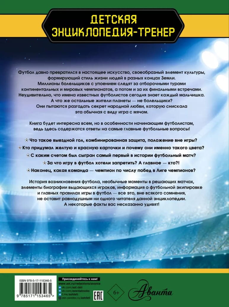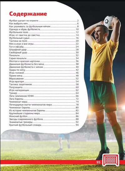 The publication tells about the most popular sport in the world - football: the history of its origin, the formation of rules, legendary championships, the best teams and outstanding players. The book will teach you how to choose the right equipment for participation in a football match, introduce tactical techniques and game moments, basic rules and penalties for their violation, as well as referee signs. The diverse information presented on these pages, visual tactical schemes, photographs and statements of world football stars will interest absolutely everyone, but especially beginner football players.