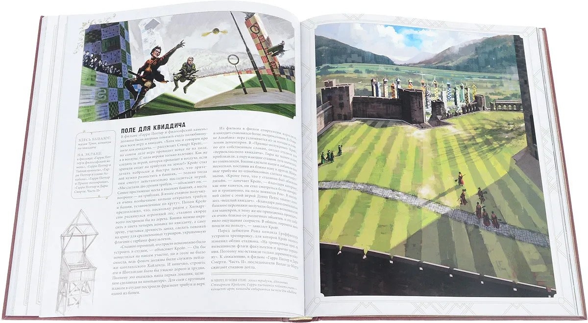 Before you is a guide to the magical world of "Harry Potter". In the new book, dedicated to the filming of the movies about the young wizard, you can look into the Dursleys' house and the magnificent Hogwarts Castle, visit the Ministry of Magic and Hagrid's hut and, of course, many other extraordinary places. You will learn how the locations were chosen, how the sets were created and the interiors decorated. In this book you will find unique sketches, shots from your favorite movies and exclusive photos from the Warner Bros. studio archives. And you will also get a pleasant surprise: a map of Slanting Lane and a catalog of paintings that decorate the corridors of Hogwarts.