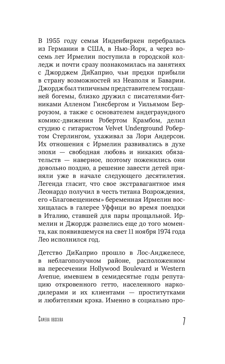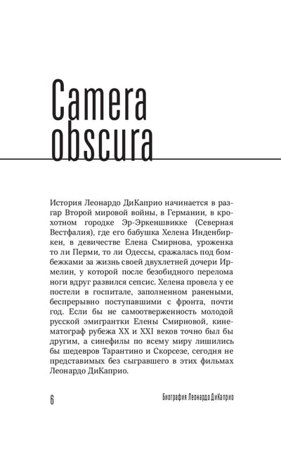 Leo drowned in Titanic, survived in The Revenant, jumped through dreams in Inception, shone on Wall Street, and was the Great Gatsby. But not once have all of his characters come together. Film critic Zinaida Pronchenko collected all the facets of Leonardo DiCaprio and wrote a grandiose portrait of him in her book The Main Character. Biography of Leonardo DiCaprio".