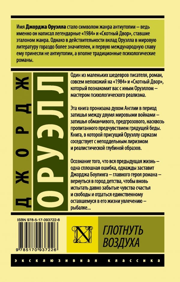 This book is imbued with the spirit of England during the lull between the two world wars - a lull deceptive, pre-threatening, imbued with a premonition of impending disaster. A book in which Orwell's inherent sarcasm is juxtaposed with genuine lyricism and realistic depth of images. The realization that the whole previous life - one continuous mistake, one day will make George Bowling - the main character of the novel - return to the city of childhood to experience again the long-forgotten feelings of happiness and freedom and give himself to the only remaining in his life hobby - fishing ...